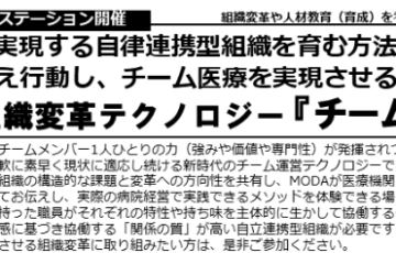 こんにちは。 全国病院組織開発協会(MODA) 共同代表 桐野です。 自ら考え行動するチーム作り 進めてますか? 2020年1月、 【多職種協働を実現する自律連携型組織を育む方法 新世代の組織変革テクノロジー『チームフ…