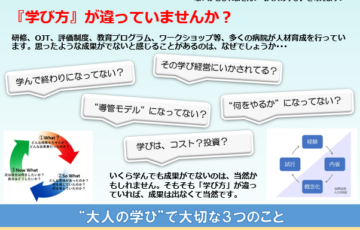 全国病院組織開発協会(MODA)  共同代表 桐野です。    多くの場合、職員の成長や学習の場を設けることを考える際に研修やセミナー等の内容を重視する傾向にあるかと思います。    これ自体はもちろん大切なことですが、…